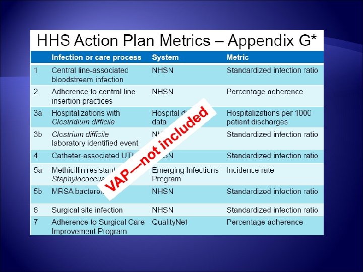 VAP Working Group Representation from all major stakeholder groups: CDC IDSA CSTE APIC SHEA ATS Critical Care Society