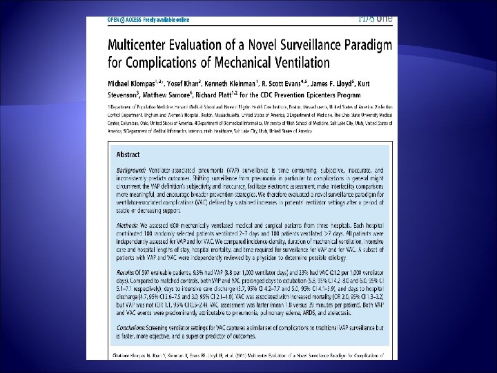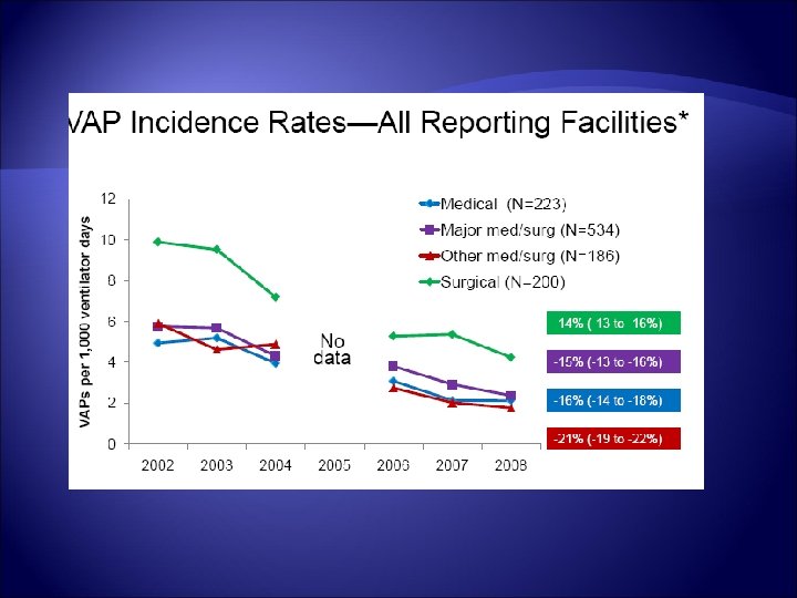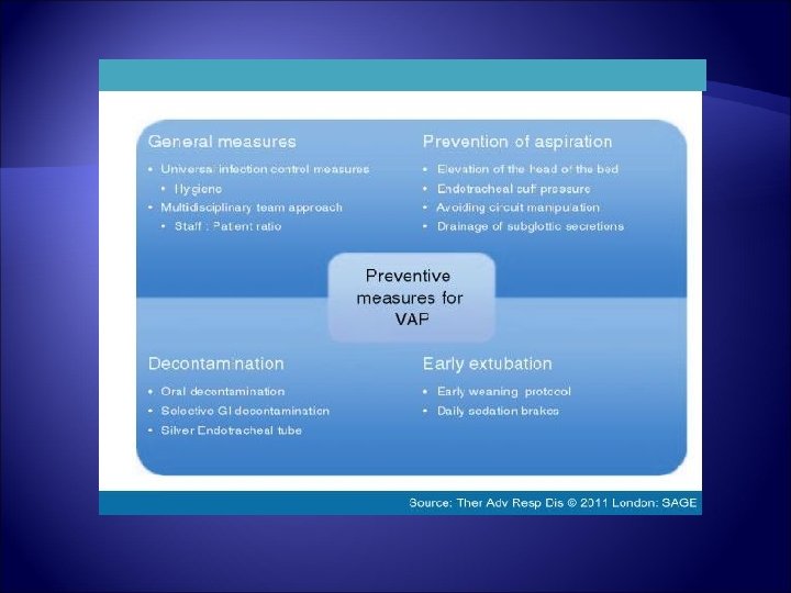 More Importantly The literature supporting high-profile measures to reduce ventilator-associated pneumonia (VAP): Many studies show significant reductions in VAP rates but almost none show any impact on patients' duration of mechanical ventilation, length of stay in the intensive care unit and hospital, or mortalit. Y Klompas M, Platt R. Ventilator-associated pneumonia – the wrong quality measure for benchmarking. Ann Intern Med. 2007; 147: 803 -805