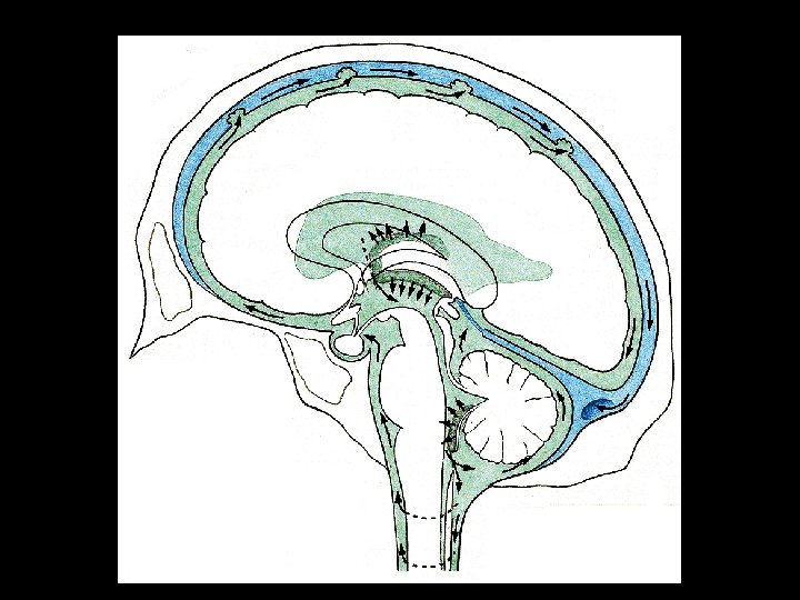 Liquor cerebrospinalis (CSF) Clear, colorless fluid, 150 m. L, secreted at the rate of 400 -500 m. L daily Produced by the choroid plexuses of ventricles Supports the brain and spinal cord, maintains a uniform pressure around them. Circulation: Lateral ventricles – for. interventriculare – 3 rd ventricle – aquaeductus cerebri – 4 th ventricle – median and lat. apertures – subarachnoid space – sinus durae matris