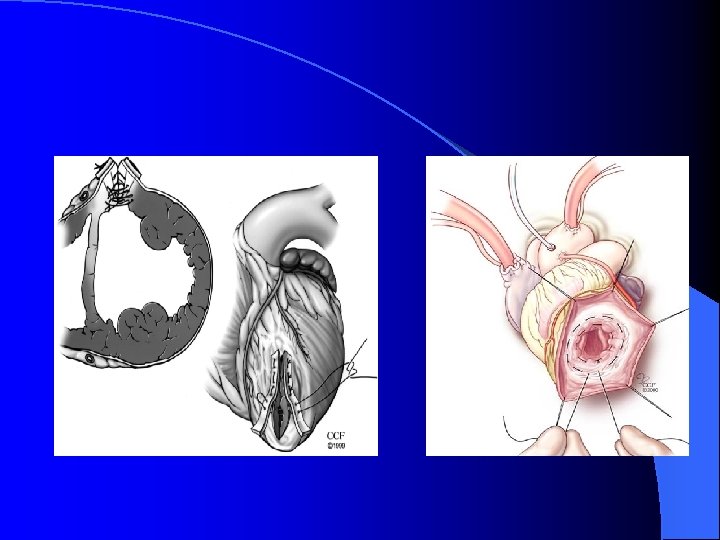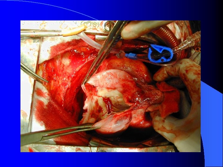 Franco-Cereceda et al. 2001; Starling & Mc. Carthy, 1999; Mc. Carthy et al. 1997 USA ( Cleveland Clinic) May 1996 – December 1998 N=62 Mean follow-up: 24 mnths Selection criteria: LVEDD > 7. 0 cm dilated cardiomyopathy without extensive scar tissue no medical contraindications NYHA III/IV heart failure > 6 months optimised on medical therapy for heart failure prior to surgery Echo: LVEF 16[7. 6] to 31. 5[10. 9] (p<0. 0001) Survival: survival 30 days – 99% survival 3 years – 60% event-free survival 30 days – 80% event-free survival 3 years – 26% LVAD rescue therapy: 11 Return to class IV HF: – 32 Freedom from class IV HF 30 days – 81% Freedom from class IV HF 1 year – 57% Freedom from class IV HF 3 years – 42% hospital deaths – 2 risk of death - 6%/month in early phase (up to 4 months); 1. 2/month (by 12 months) Mortality causes: HF/arrhythmias – 11 sudden death – 4 multiorgan failure – 4 stroke – 1 witnessed cardiac arrest – 1