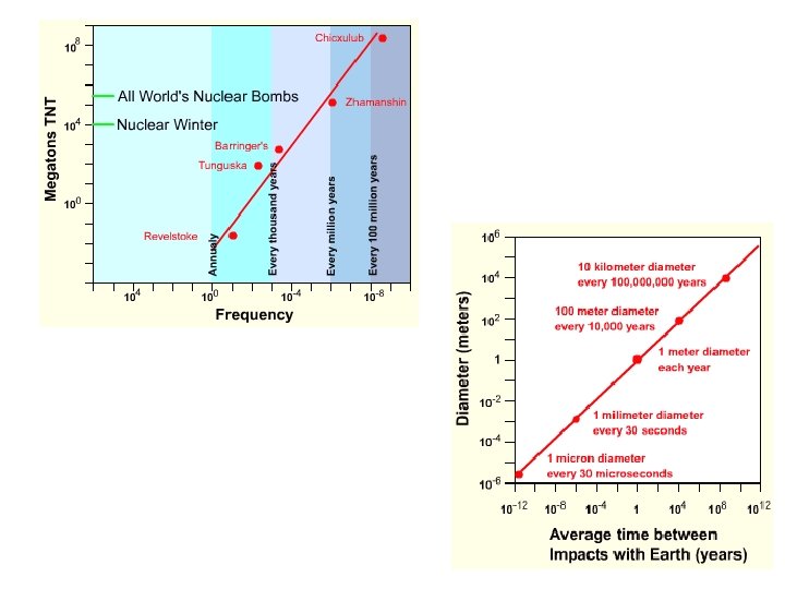 Venus Mars Earths Moon S Pole Mercury Mistastan Slides: 37 Download presentation Venus Mars Earth’s Moon (S. Pole) Mercury Mistastan Lake, New Foundland, Canada 28 Km 38, 000 years Barringer Meteor Crater, AZ 1. 18 km 49, 000 years Wolf Creek, Australia 0. 875 Km 300, 000 years Bosumtwi, Nigeria 10. 5 Km 1. 3 Million years Roter, South Africa 2. 5 km 5 Million years Karakul, Tadjikistan 45 Km < 10 Ma Chicxulub, Mex 170 Km 65 Ma Deep Bay, Sask. 13 km Clearwater Lakes, Sask. 32 km/22 km 290 Million years 100 Million years Gosses Bluss, Australia 22 km 142. 5 Million years Aorounga, Chad 17 km 200 Million years Manicougan Lake, Quebec 100 km 212 Million years Radar Image of NEO 1999 JM 8 Missed Earth by 5 million km in 1990, 6 million km in 1999 Average diameter 3. 5 km Tunguska Event, 1908, Russia 80 million trees knocked down over 2, 150 square kilometres (830 square miles Tunguska Event 1908 Equivalent to a 100 MT Nuclear Bomb Blast Question If cratering rate on Earth is same as our Moon, why are their so few craters preserved? What is wrong here? Apollo 14 site spherules (~ 0. 2 mm diameter) Argon 40/Argon 39 dates (accuracy ~ +/- 200 MY) Apollo 14 site spherules (~ 200 micro-meters diameter) Argon 40/Argon 39 dates (accuracy ~ +/- 200 MY) => 26 Ma periodicity 1 BY averaging bins Black and opaque spherules only Question: If cratering rate on Earth is same as our Moon, why are their so few craters preserved? Answer: Erosion