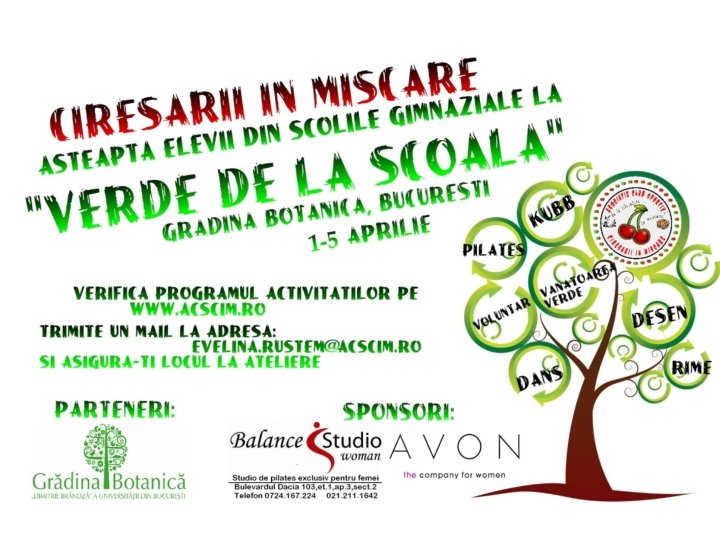 Evenimentul “Verde de la Scoala” organizat de ACS Ciresarii in Miscare in parteneriat cu Gradina Botanica, Bucuresti Activitatile ce vor fi prezentate in continuare au fost deschise tuturor scolilor gimnaziale din Bucuresti.