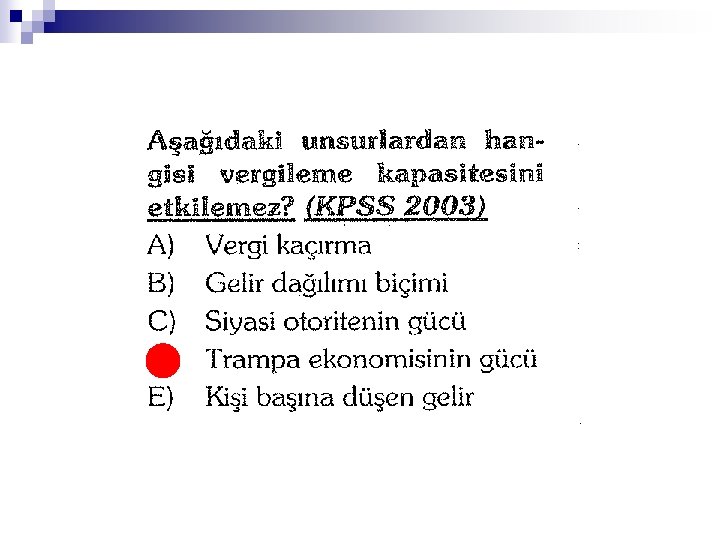 2. Ekonomik Sınır n n Bir ülke için GSYH, birey için gelirinin tümü verginin ekonomik sınırının son noktasıdır. Bir bireyin gelirinin tümünün vergilendirilmesine müsadere denir. Müsaderede kişinin tüm gelirine devlet el koyar.