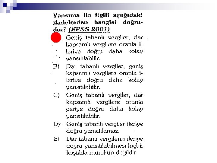 Konjonktürel Durum n n Ekonominin genişleme dönemlerinde vergileriye doğru kolayca yansıtılabilirken, geriye doğru yansıtılamaz. Daralma dönemlerinde ise ileriye doğru yansıtılamazken geriye doğru yansıtılabilmektedir.