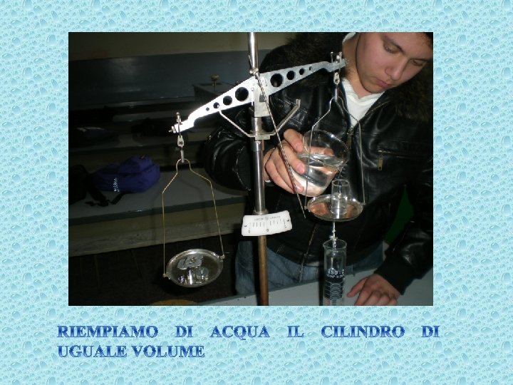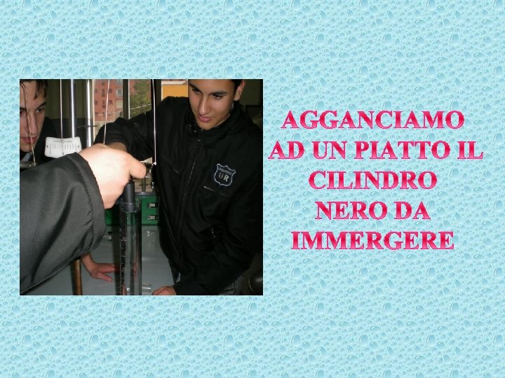 MATERIALI E STRUMENTI Asta di supporto Sferetta metallica provvista di gancio Dinamometro Cilindro graduato Acqua
