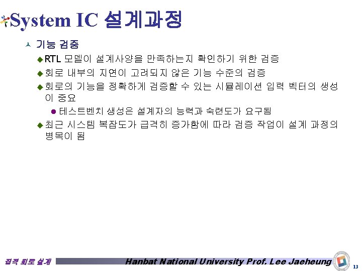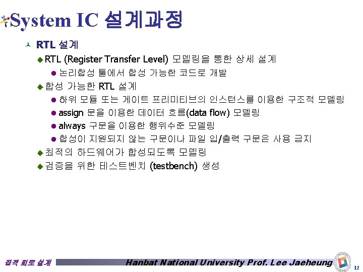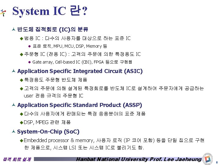 System & 하드웨어 의 이해 칩 제작 집적 회로 설계 Hanbat National University Prof. Lee Jaeheung
