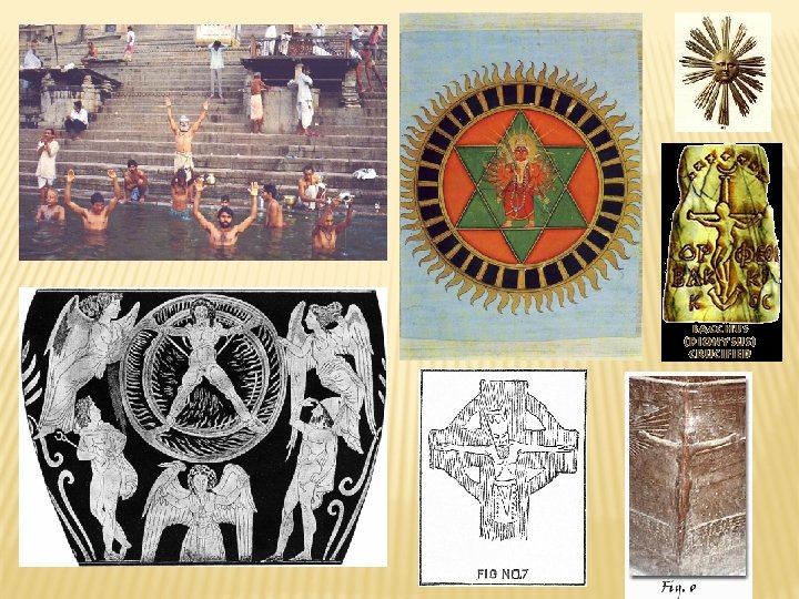 Crucified Bacchus “This unusual amulet dates from the third century BC. It is intended as a magical charm, and depicts a crucified figure labelled “Orpheus. Bacchus. ” Above the figure is a crescent moon, and seven stars, the meaning of which is unknown. The Tau Cross, named after the Greek letter it resembles, is a very old symbol. The Tau cross was a symbol of the Roman God Mithras and the Greek Attis, and their forerunner Tammuz, the Sumerian solar God, the consort of the Goddess Ishtar. Tammuz, like Christ, was associated with fishing and shepherding. The Tau cross takes the shape of the letter of his name, and is one of the oldest letters known. A solar god, the death and resurrection of Tammuz were celebrated every spring (origin of Easter or Ishtar). The Catholic custom of marking the forehead with a cross of ashes dates back to these rituals. The tau cross is often used as a variant of the Latin, or Christian. Esoterically, the Tau represents a gate or opening, symbolic of death. ”