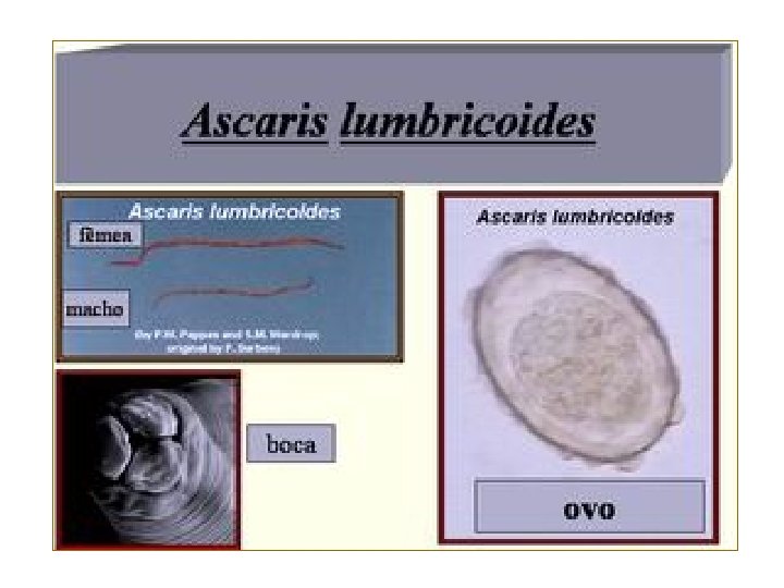 Helmintoses ou verminoses Parasitoses por Platyhelminthes e Platyhelminthes Aschelminthes da classe Nematoda.