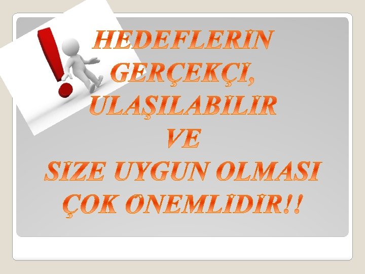 1. AMAÇ BELİRLEME � Hedefler basamaklandırılmalı, özel hedeften genel hedefe doğru hareket edilmelidir. � Bu hedef matematikte bir sorunun çözüm yolunu öğrenmek, okuduğunu anlamak gibi küçük adımlardan başlamalıdır. �UNUTMAYIN!!! DAMLAYA GÖL OLUR!
