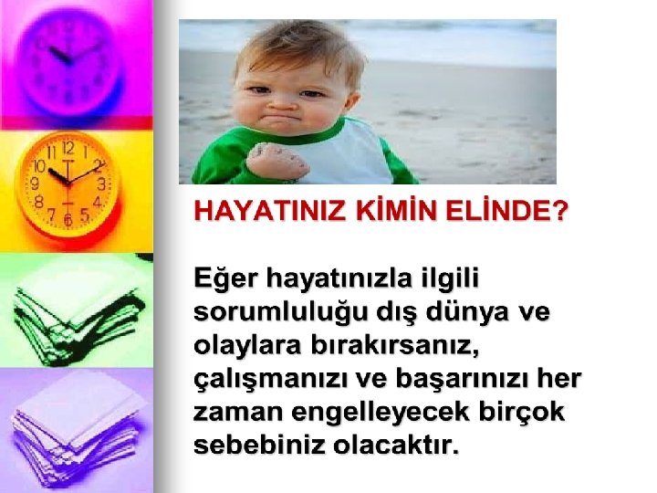 NASIL BİR ZAMANLAMA , DERS ÇALIŞIRKEN EN YÜKSEK VERİMİ SAĞLAR 45’+5’+10’=60’ • 45 dakika ders çalıştıktan sonra • 5 dakika çalıştığınız konuları gözden geçirmelisiniz • Her çalışma süresinden sonra da 10 dakikalık bir dinlenme arası vermelisiniz