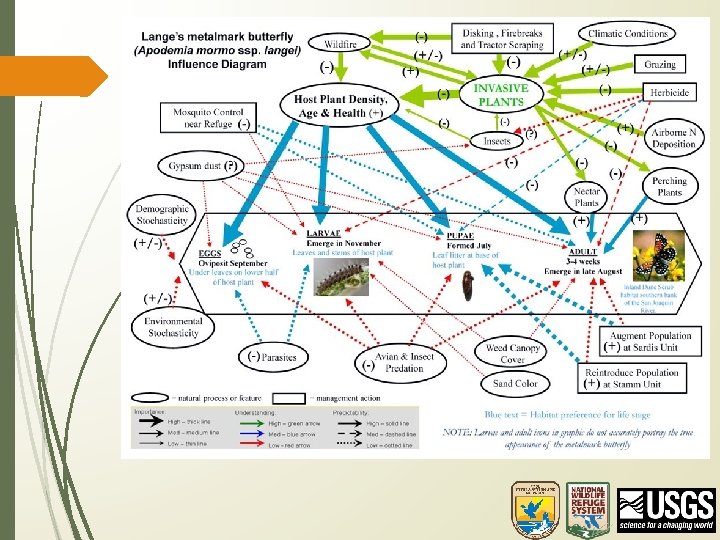 Refuge Breakout Goals Create a conceptual model • • Objectives Limiting Factors and Threats External Drivers Symbols: • • • objective = hexagon can influence = rounded box cannot influence = circle Identify uncertain linkages • Bold lines = important linkage, big effect • Dashed lines = uncertain linkage or effect