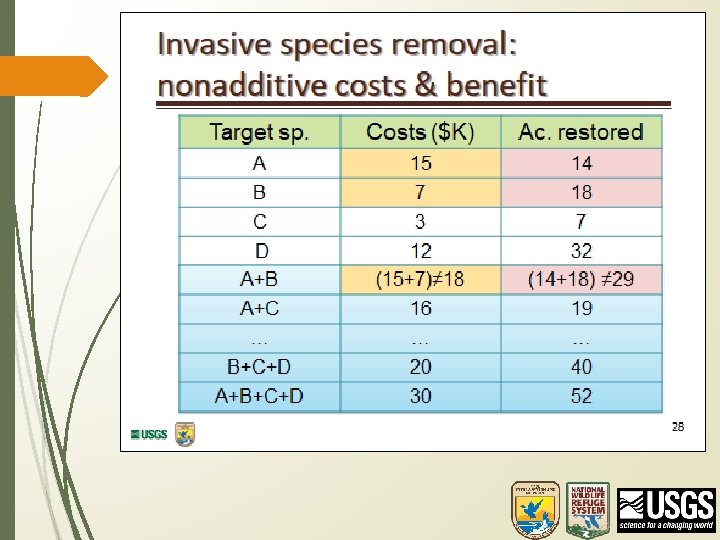 Refuge Breakout Goals Identify potential actions • Place actions onto your conceptual model • Identify the pathway from each action to objective (this is called a “result chain”) • Develop themes for groups of actions • Create 4 -6 Alternatives/Strategies • • Portfolios Strategy Table