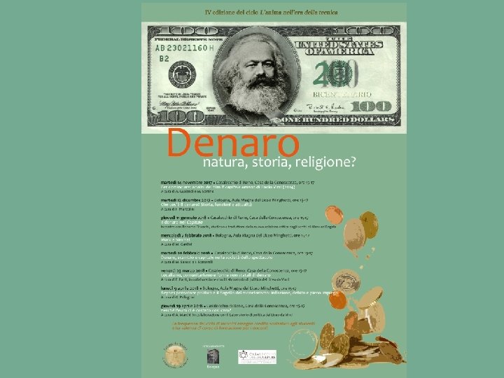 NATURA Ma che cos’è la realtà del denaro? Se, da un lato, il denaro è frutto di una pura “convenzione”, d’altro lato, che cosa assegna valore e realtà a questa convenzione? Questo è uno dei problemi che tenteremo di affrontare durante i nostri incontri.