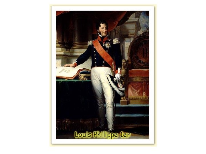 III/ La monarchie de Juillet Louis-Philippe veut être proche du peuple, mais il ne fait aucune réforme pour améliorer le sort des ouvriers. Il rétablit le drapeau tricolore mais n’accorde pas le suffrage universel. Les républicains s’opposent au régime. Ils organisent des banquets au cours desquels les orateurs réclament le droit de vote. En février 1848, l’interdiction d’un de ces banquets déclenche l’insurrection. Lorsque la foule envahit le palais des Tuileries, le roi abdique en faveur de son petit -fils. Mais les républicains qui ne veulent plus de roi proclament la république. Il n’y aura plus de roi en France.