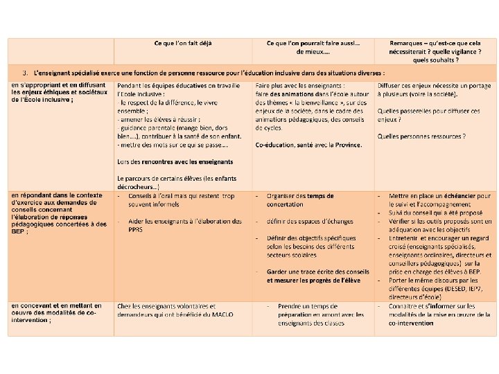 Lifou « En appui sur le référentiel des compétences de l’enseignant spécialisé du Cappéi (Annexe 1), décliner sur quelques items choisis en groupes, dans les 3 axes : Ce que l’on fait déjà Ce que l’on pourrait faire de plus, de mieux Ce que cela demandera »