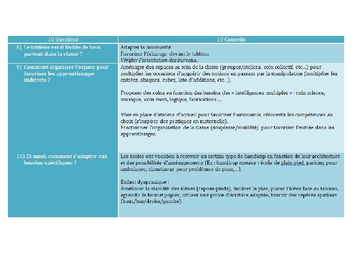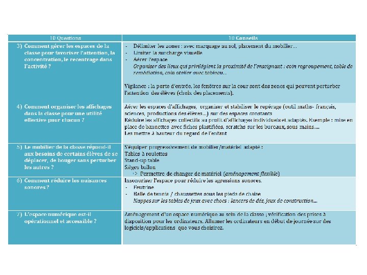 Axe 3 - L'enseignant spécialisé exerce une fonction de personne ressource pour l’éducation inclusive dans des situations diverses Dumbéa Sujet D : aménagement de l’espace « Demain, je déménage ma classe… Demain, j’aménage la cour… : 10 conseils/questions aux enseignants pour aménager l’espace classe / cour et prendre en compte les BEP. »