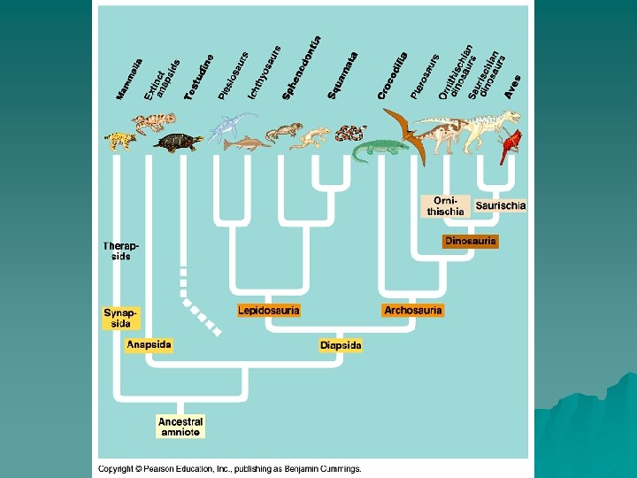 Reptile Radiation Synapsids (therapsids) - led to mammals u Sauropsids u – Anapsids (turtles) – Diapsids (all others)
