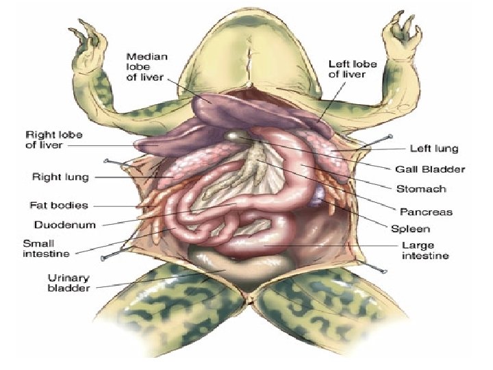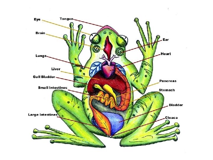 Amphibian Characteristics - Ectotherms - Have lungs and legs - Means “Double Life” - Young live in water and adult live on land - Thin skin to absorb water and oxygen - Complete metamorphosis -Ecological indicators sense changes in Environment with thin skin Ex: Frogs, Toads, and Salamanders Lung - Respiratory organ - Exchanges O 2 and CO 2 with the air