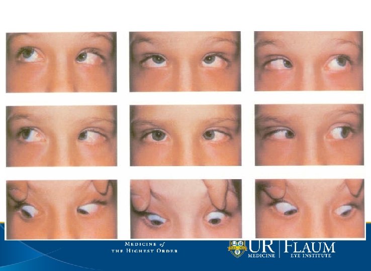 • Inferior Oblique Dysfunction • Overaction, Palsy • Superior Oblique Dysfunction • Overaction, Palsy, Brown Syndrome • Dissociated Vertical Deviation • Monocular Elevation Deficiency • Orbital Floor Fractures • A and V patterns