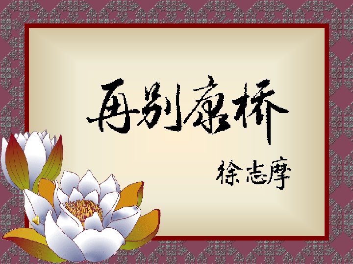 Very quietly I take my leave As quietly as I came here; Quietly I wave good-bye To the rosy clouds in the western sky. The golden willows by the riverside Are young brides in the setting sun; Their reflections on the shimmering waves Always linger in the depth of my heart. The floating heart growing in the sludge Sways leisurely under the water; In the gentle waves of Cambridge I would be a water plant! That pool under the shade of elm trees Holds not water but the rainbow from th Shattered to pieces among the duck w Is the sediment of a rainbow-like dream To seek a dream? Just to pole a boat upstream To where the green grass is more verd Or to have the boat fully loaded with st And sing aloud in the splendor of starlig But I cannot sing aloud Quietness is my farewell music; Even summer insects keep silence for Silent is Cambridge tonight! Very quietly I take my leave As quietly as I came here; Gently I flick my sleeves Not even a wisp of cloud will I bring aw