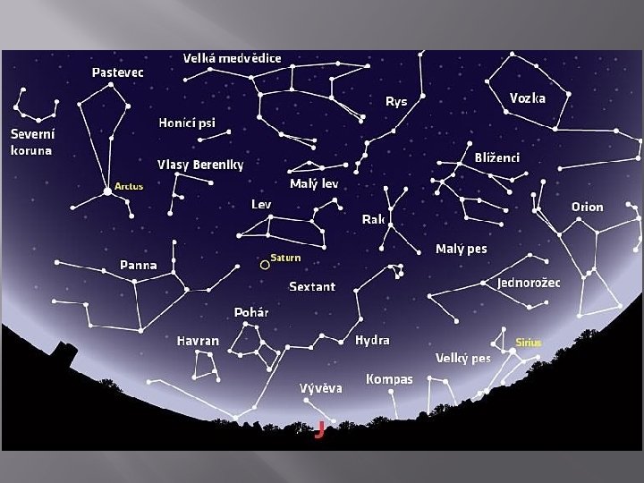 Souhvězdí Orion � � Zimní souhvězdí Historie: V řecké mytologii je Orion vysokým lovcem, který díky svému otci, králi Poseidonovi, mohl chodit po dnech moří s hlavou stále nad hladinou. K lovu používal svůj meč, který je sám o sobě mezi astronomy známý jako asi nejfotografovanější mlhovina oblohy, M 42. Orionovou nejznámější obětí měly být mořské nymfy Plejády, které ale sám Zeus proměnil v holubice, aby se před Orionem mohly skrýt na obloze. Tam je známe jako hvězdokupu M 45. Smrt Oriona má podle všeho na svědomí štír, kterého na něj poslala bohyně Héra. Také Orion se na oblohu dostal dokonce se svými dvěma psy (souhvězdí Malý a Velký pes). Nyní tedy obývá oblohu na protější straně od Štíra tak, aby se stačil schovat při štírově příchodu.