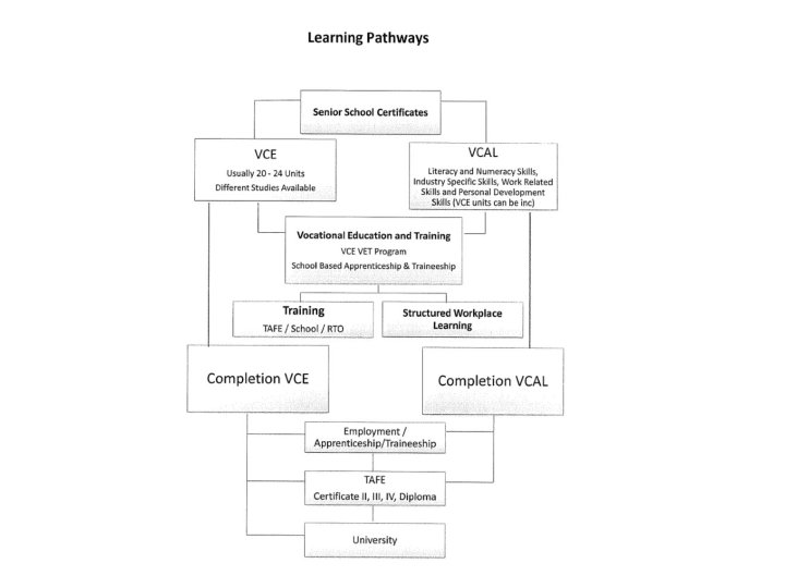 Benefits of a VET course? �Practical – Hand on learning. . �Gain a Nationally recognised Qualification. �Contribution towards VCE Unit 1‐ 4 Sequence. �Increase ATAR �Develop industry links. �Employment opportunities. �Develops student’s interest area. �Time off an apprenticeship (trades).