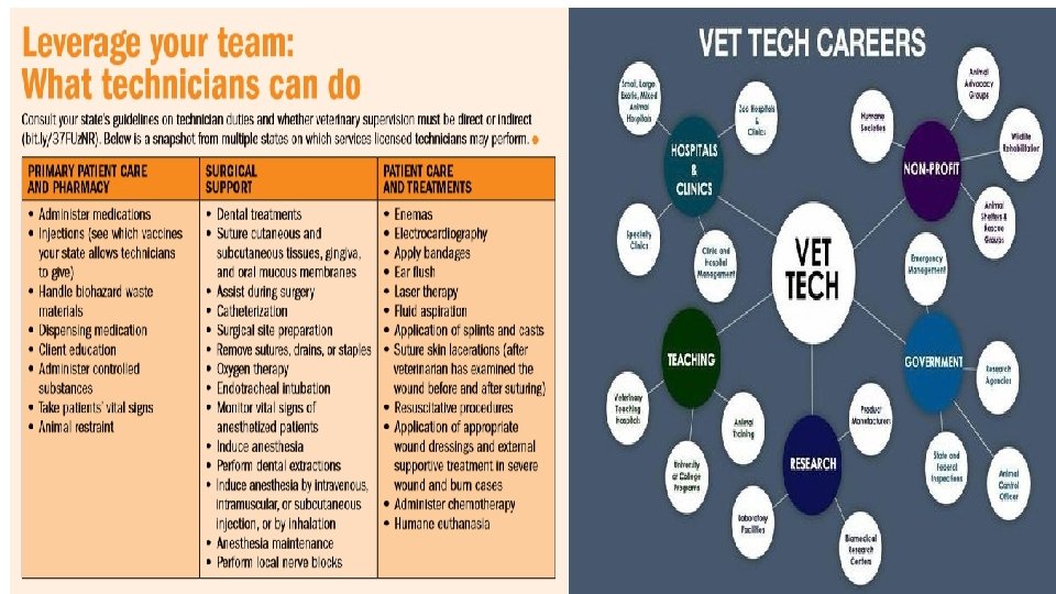 VETERINARY TECHNICIAN CAREERS When you graduate from vet tech school, the most obvious option is to begin working in a local veterinary clinic. Regardless of whether you want to work with small animal or large animal patients, many vet techs envision themselves in general veterinary practice, providing a combination of wellness, medical, and surgical care. A license to work as a veterinary technician is not mandatory however it is illegal in Texas to use the term “LVT” or call themselves an LVT without a license issued from the Texas Board of Veterinary Medical Examiners.