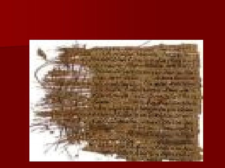 PAPİRÜSLER n EBERS PAPİRÜSÜ: Kalbin Damarları ve Yaralar, Kadın hastalıkları n SMİTH PAPİRÜSÜ: Cerrahi n KAHUN PAPİRÜSÜ: Tıp ve Veterinerlik konularını içerir.