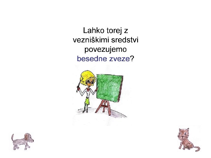 naš. pes Bi ju lahko povezali z istimi vezniki kot prej? vaša mačka