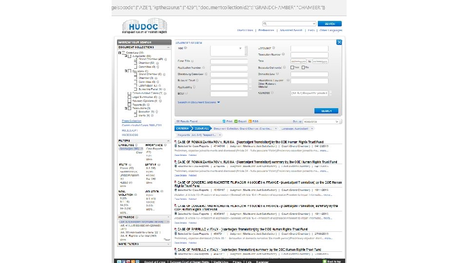 Azərbaycanla bağlı 23. 10. 2016 tarixinə 140 iş kommunikasiya olunub. Bu işlərdən 19 -u 8 -ci maddə ilə bağlıdır.