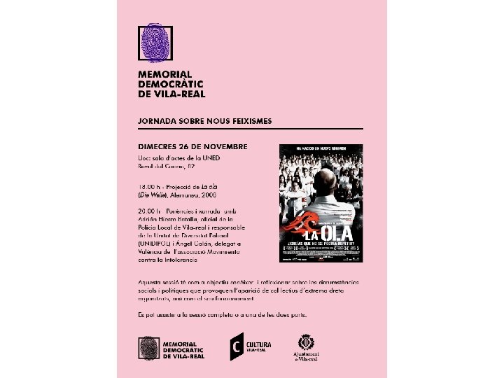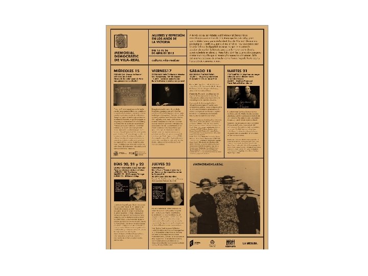 Arxius privats Arxius familiars, personals Fundación Juan March: Archivo Gunther (Transición), Archivo Linz (Manuel Fraga), Arxiu Poblet: Tarradellas i Maciá Associacions, grups de recerca Grup Recerca Memòria Històrica Castelló, UAlacant: Arxiu Memòria Democràtica (ACPV), BNCatalunya (ACPV) Arxius de partits polítics, sindicats (Fundacions, universitats) Pablo Iglesias (PSOE), Francisco Largo Caballero (PSOE), BVCervantes (JARE), UAlacant: Archivo Memoria Democratica (PSPV), BNCatalunya (ACPV), Fundacion 1º Mayo (PCE) Premsa Hemeroteques, fons fotogràfics i audiovisuals Biblioteca Social Reconstruir, Archivo Ateneo Español de México