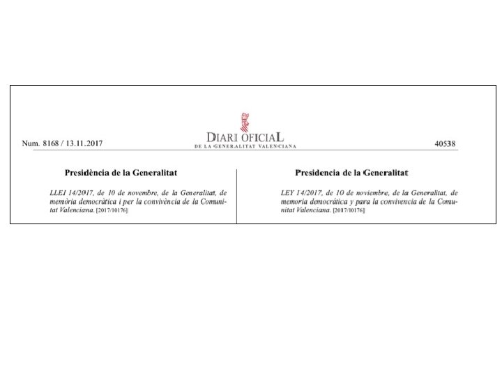 ARXIUS VALENCIANS Arxiu Diputació (BOP, València: Delegació Memòria Històrica) Arxiu parroquial Quinque libri Arxiu Històric Provincial Fons Guerra Civil i Franquisme, Expedients Responsabilitats Polítiques Arxiu Regne de València Responsabilitats polítiques, presons, Junta Protección Menores, Invalidos Civiles, Auxilio Social, Nomines Carabiners i cossos seguretat (1936 -1939) Arxiu Històric Comunitat Valenciana Actes del Consell (1978 -2007), Expedientes maestros provincia València, tribunal Titular Menores (19231989), Propiedad intelectual (1879), Expedientes Ley peligrosidad social (1972 -1986), Expedientes Asociaciones (1887) Arxiu Corts Valencianes Diputats, Grups parlamentaris