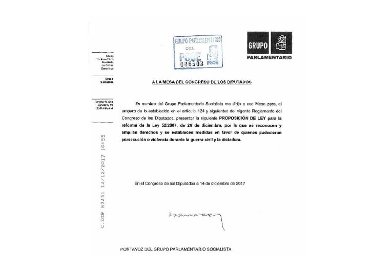 Debat obert Dret a la comunicació i informació (Constitució, 1978, art. 20, 44, 148. 1. 15, 149. 2) Reforma de la legislació necessària per garantir la conservació permanent dels documents vitals per a la memòria del poble (art. 46) Garantir el dret d'accés als documents sotmesos a la qualificació i regulació del secret oficial (art. 105 b) Reproducció gratuïta de la documentació per la defensa de drets i la investigació del patrimoni cultural