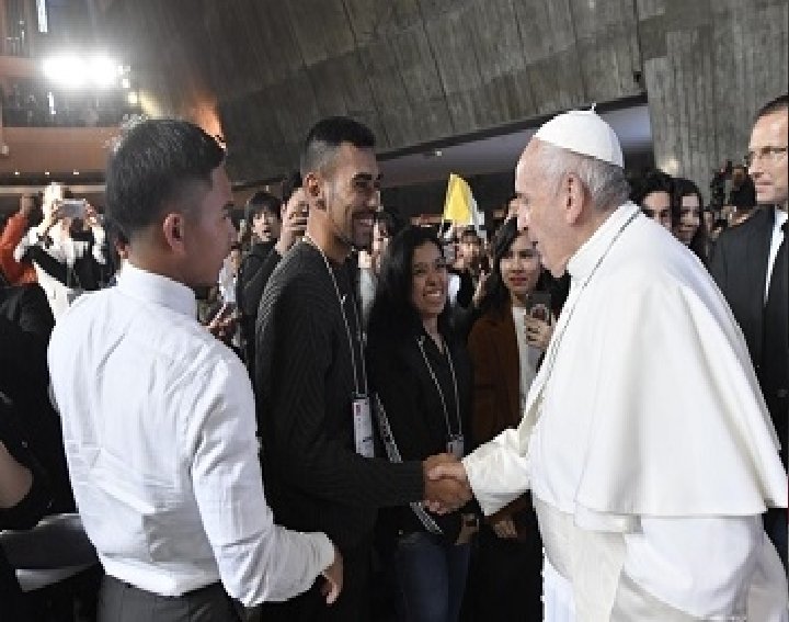 Cari giovani, … Vedere e ascoltare la vostra energia e il vostro entusiasmo mi dà gioia e mi dà speranza. … Impariamo a costruire insieme la società che vogliamo per il domani. … … Non coprite i sogni! Non stordite i vostri sogni, date spazio ai sogni e osate guardare a grandi orizzonti, …