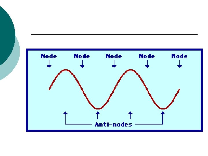 Definitions Node – points of standing wave that remain at rest – where destructive interference is occurring ¡ Loop or Antinode – double crest or double trough – where constructive interference occurs ¡