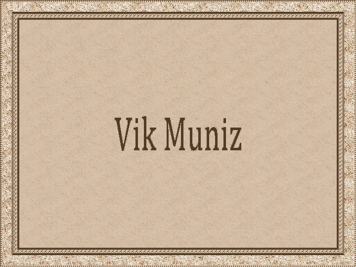 Vicente José de Oliveira Muniz é um artista plástico, fotógrafo e desenhista brasileiro, conhecido como Vik Muniz, nascido em São Paulo, em 20 de dezembro de 1961. Vik Muniz cursou Publicidade e Propaganda na “Fundação Armando Álvares Penteado” – Faap, em São Paulo. Em 1983, passou a viver em Nova York, onde reside e trabalha. Desde a sua mudança para Nova York e o estabelecimento de um estúdio em Brooklyn, Vik Muniz desenvolveu uma obra que tem como objetivo reanimar o aturdimento visual e crítico do espectador, dirigindo a sua atenção para os mecanismos técnicos e conceituais que estão por detrás da produção, construção e reprodução de imagens.