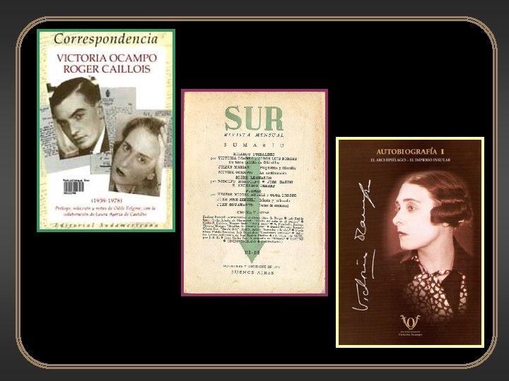 1: Roger Caillois y Victoria - 2: 1945. Comida de despedida a Caillois, ofrecida por sus amigos. Roger conversa con Victoria. Atrás, Martínez Estrada, N. Borges y González Lanuza Los lazos que unieron a Victoria Ocampo y Roger Caillois fueron de una gran importancia para sus vidas, pero también un puente privilegiado para la difusión de la literatura argentina en Europa.