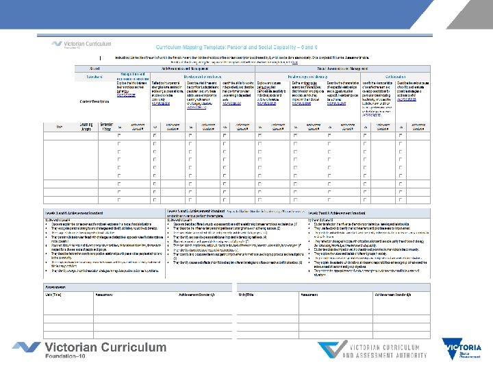 Curriculum mapping Why? • Mapping identifies the extent of curriculum coverage in units of work and clearly links teaching, learning and assessment while working with the curriculum continuum. How? • Mapping templates support teachers to identify where content descriptions and achievement standards are being explicitly addressed within the school’s teaching and learning program.