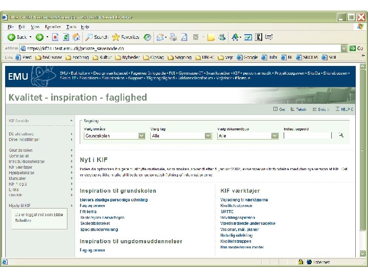 Undervisningsministeriets tiltag I • • • Etablering af ENIS netværk 1999 - 2004 KIF – Kvalitet Inspiration Faglighed Videndelings konferencer ITMF formidlings projekter Åbenhed og gennemsigtighed