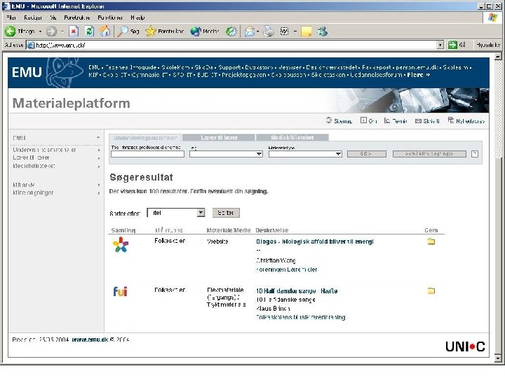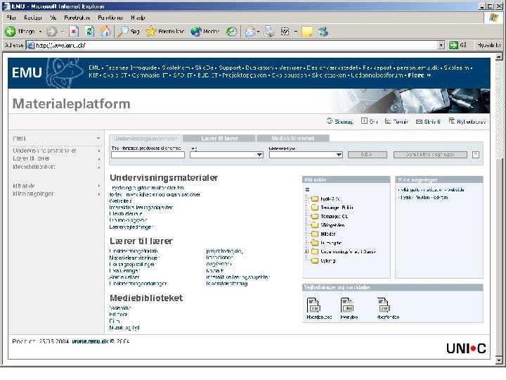 Undervisningsministeriets tiltag II • Tilskud til anskaffelse af Videndelings koncepter • Etablering af ENIS netværk 2004 – 2007 • Materialeplatformen • Gratis UNI-Servere til ca. 1400 skoler