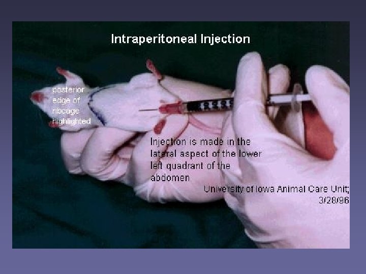 SOMMINISTRAZIONE INTRA-PERITONEALE (topo) Volume max per un topo di 20 -25 g: 0. 5 ml