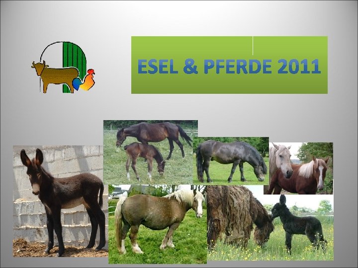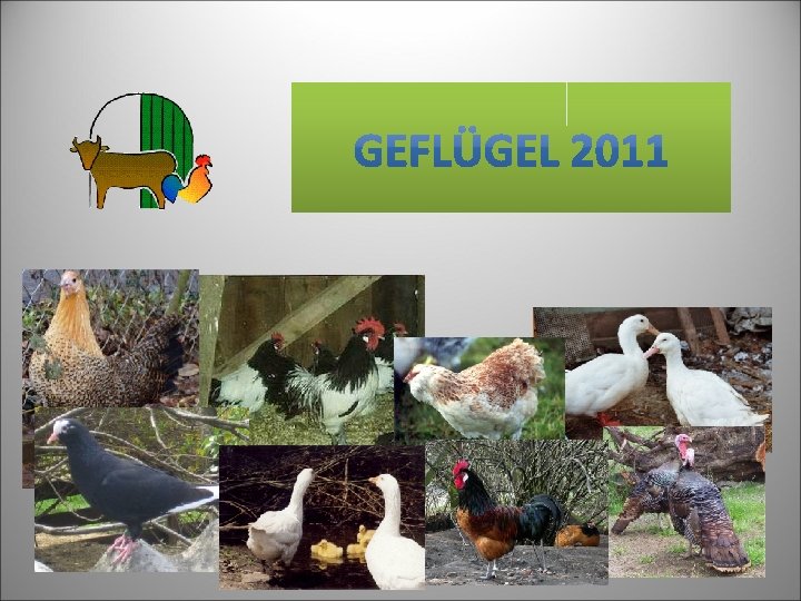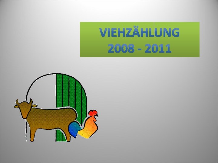 VIEHzählung 2011 Was möchte ich sehen? Alles Allgemeines Einzelne Rassen Ø Geflügel (Enten, Gänse, Hühner, Puten) Ø Tauben Ø Wiederkäuer (Rinder, Schafe, Ziegen) Ø Schweine Ø Pferde, Esel Ø Kaninchen Ø Hunde Ø Bienen Vergleich Tierbestand 2008 – 2011 Beenden