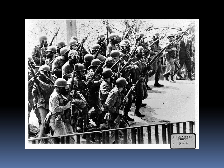 1970 Kent State Incident Nat’l Guardsmen open fire on a crowd of student antiwar protesters at Ohio's Kent State University killing 4 students and wounding of 8 others. Nixon publicly deplores the actions of the Guardsmen, but cautions: ". . . when dissent turns to violence it invites tragedy. " Protesters had been hurling rocks and empty tear gas canisters at the Guardsmen.