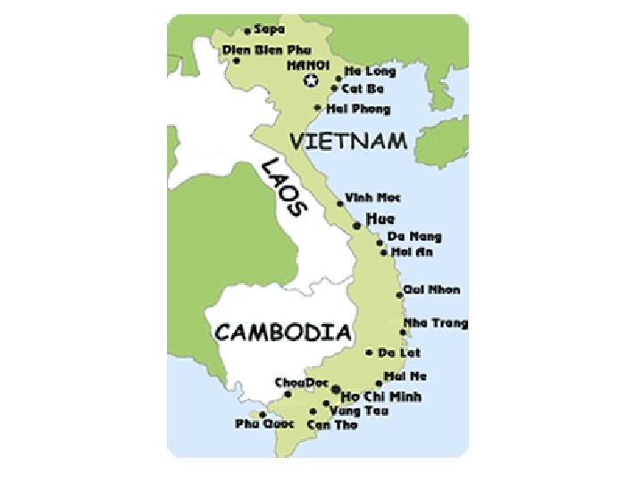 Peace? • 1954 International Conference in Geneva – French and Vietminh sign agreement to divide at the 17 th parallel – All Vietnamese elections will be held in 1956 • 1955 new government forms in South Vietnam headed by Ngo Dinh Diem- American backed. North is backed by China and Soviet Union- Ho Chi Minh • Division becomes permanent, elections never happen, civil war erupts