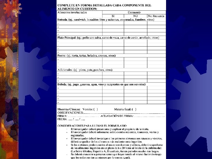 Muestras para laboratorio La obtención de muestras de todos los alimentos es de suma importancia en el estudio de brote.