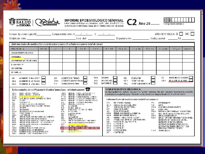 Dirección de Epidemiología Av. Velez Sarfiel 2311. Area celeste 1º piso Tel: 0351 - 4688686/8690 Guadia: 0351 -154020975 E-mail: Epidemiologia@cba. gov. ar