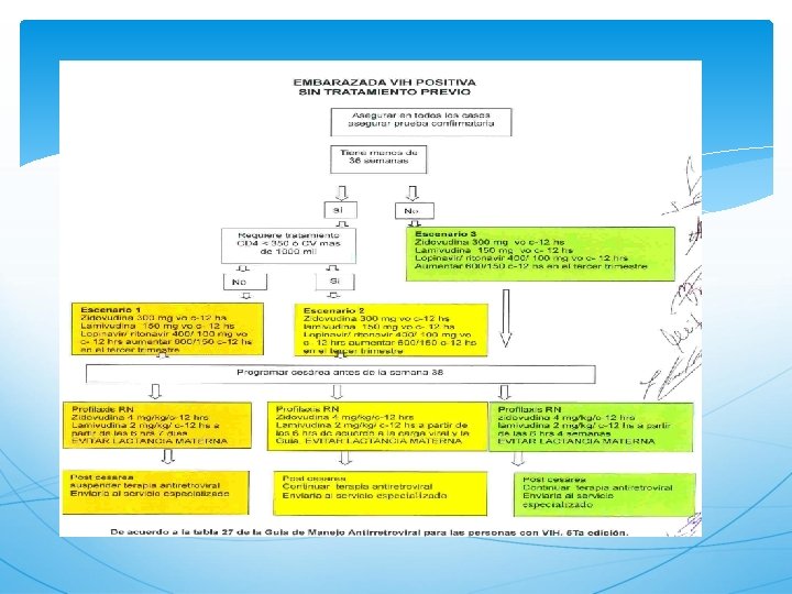 Actualmente, se recomienda iniciar la misma triple terapia con antirretrovirales (ARV) en todas las embarazadas infectadas por el VIH en la clínica de atención prenatal, y continuar con el tratamiento de por vida. Las principales ventajas son: la simplificación del tratamiento y la prestación de servicios. la prevención transmisión en embarazos futuros la prevención continua de la transmisión sexual del virus a parejas. elimina de la necesidad de interrumpir y reiniciar la administración de ARV