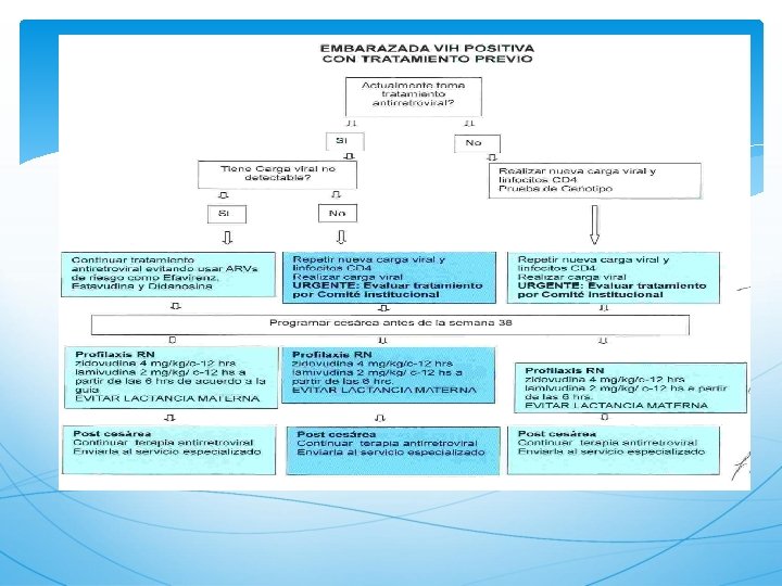MANEJO GENERAL PACIENTES VIH/SIDA Etatipificación Clínica / Laboratorio. Controles clínicos 1 -3 meses. Controles CD 4 y CV según etapas. Control hematológicos y bioquímicos. Tratamiento de enfermedad Intercurrentes Vacunación antineumonia. Profilaxis TBC y otras oportunistas. Evaluación continua. Control ginecológico y PAP cada 3 – 6 meses según etapa.