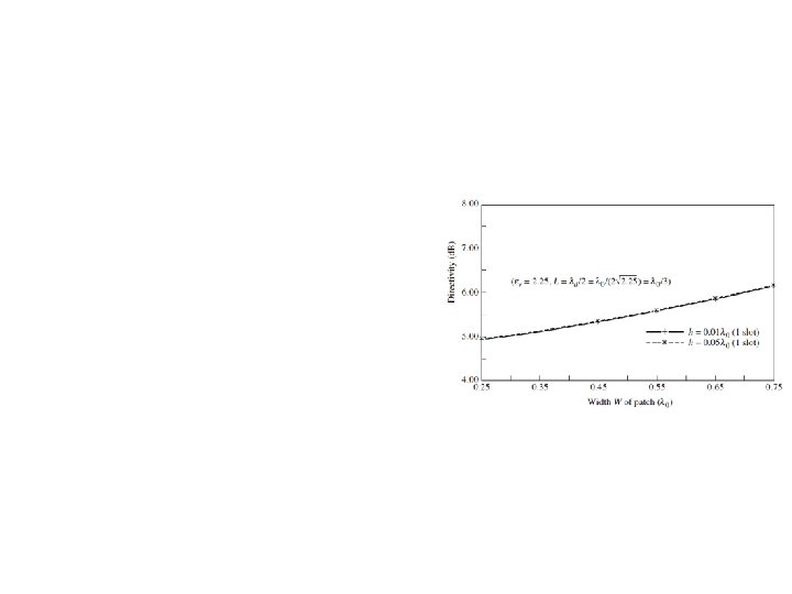Rectangular patch 1. Transmission line model: 2 narrow radiating slots of Width W and height h, seperated by microstripline of width W and length of L fringing field