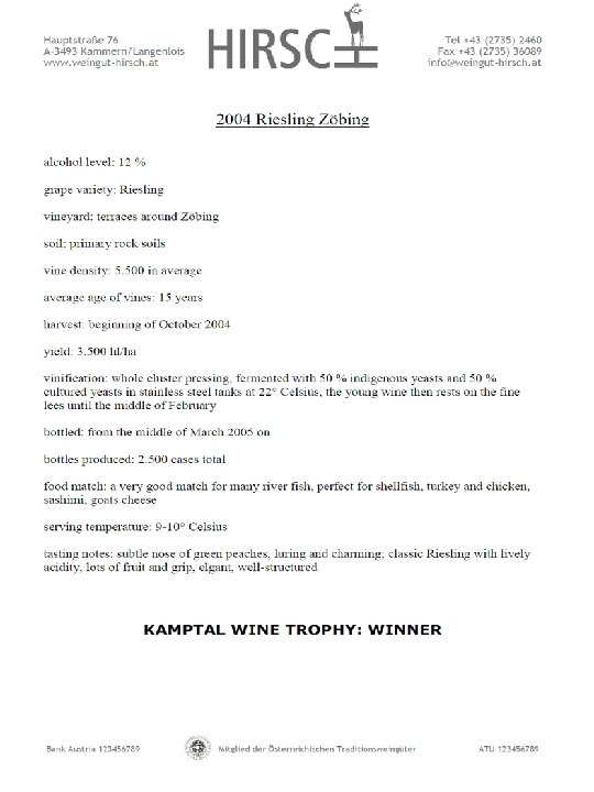 Es mucho mejor trabajar con la naturaleza, que tratar de luchar contra ella. Desde hace décadas Josef Hirsch ha seguido su credo. Viticultura biodinámica. Técnicas como la cosecha en verde. Vendimia manual en cajas. Combina tradición con modernidad. Selección y manipulación suave de la uva. Fermentación con levaduras propias. Embotellado lo realizan tarde. Tienen en consideración el tiempo para el tratamiento de sus vinos.